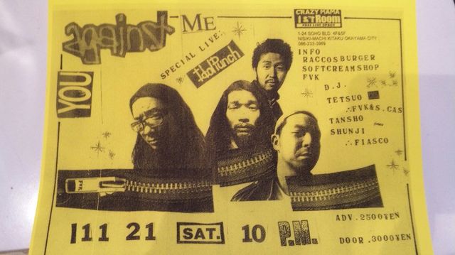 YOU AGAINST ME !!!! open & start 22:00 / adv.\2,500- door.\3,000- Live : Idol Punch DJs : TETSUO(FVK,CASS) TANSHO(fiasco) SYUNJI(fiasco) Food & Drink : Raccos Burger(4周年記念バーガー登場予定) Goods : FVK(イベントT) / Raccos Burger(4周年記念T) Ticket : RaccosBurger / SoftCreamShop / FVK 10月に4歳を迎えたRaccosBurgerの4周年イベント! 今回は仲良しFVKとfiascoと共同企画でワイワイと朝までやっちゃいます。 この日、登場予定となる4周年バーガーに4周年記念Tシャツも限定発売! お問い合わせは