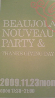 ※管理人様、告知失礼致します。内容等、もし不適切な点がございましたら削除の程宜しくお願い申しあげます。 Love Carat Soul Presents *BEAUJOLAIS NOUVEAU PARTY & THANKS GIVING DAY 2009* at 「alife」Nishiazabu 今回、ボジョレー・ヌーボー解禁にともない、とっても美味しく楽しいparty素敵な女性・男性を、約100対100で合計200名の方をお招き