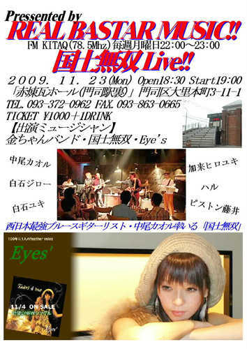 そして夜は西日本最強ブルースギターリストの異名を持つ中尾カオル率いる「国士無双」のライブです
