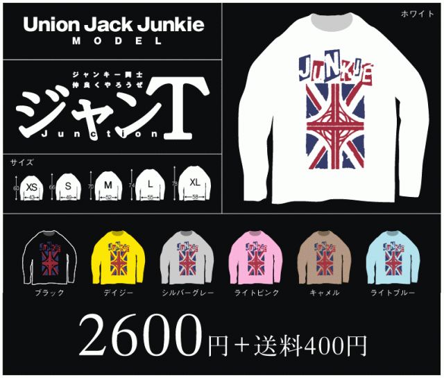 受注生産〆切ました〜。 売り切れです。もう買えません ごめんなさい。 ---以下、発売時の記述です--- 振り込み&メッセージの方よろしくお願いしますね http://mixi.jp/view_bbs.pl?id=23033410&comm_id=2105047 ジャンT【ユニオン.ジャック.ジャンキーモデル】 写真集「ジャンクション」著者& 日本ジャンクション公団総裁/推薦タイプ サイズは5種・ボディカラーは7色 ホワイト/ブラック/デイジー/シルバーグレー/ライトピンク/キャメル/ライトブルー