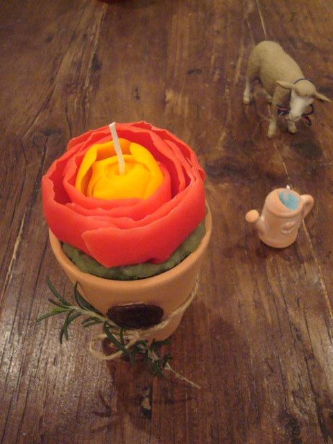 みなさん、こんばんは!今月もよろしくお願いします 21時より、よろしくお願いします 今回より3800円のクラスも新しく仲間入りです <お昼のクラス> ●バラとじょうろのキャンドル (お飲みもの付きで5000円) バラの香りです ●リボンなマフィンキャンドル1個(お飲みもの付きで3800円) 美味しい香りです ☆2個マフィンを作られる方は、お飲み物付きで5000円 ●エリザベスちゃんとチョコカップケーキキャンドル (お飲みもの付きで5000円) (色と香りを
