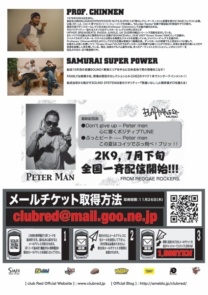 MAIL TICKET / 1500 yen ( ADDRESS / clubred@mail.goo.ne.jp )