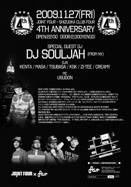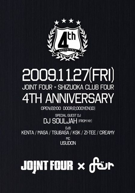 JOINT FOUR ×Club Four 4th anniversary ★Special Guest DJ:DJ SOULJAH(from NY)★