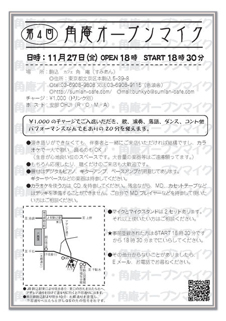 いつもありがとうございます。 11月のチラシです。 午後6時オープンの6時30分よりスタートの予定です。 ご参加の程よろしくお願い致します。