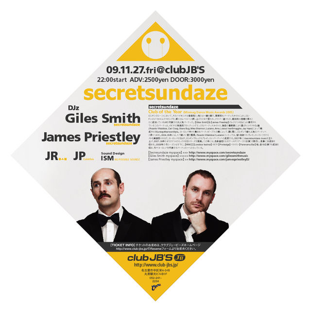 EUを代表するパーティ「secretsundaze」 が遂にJB'S へ!!