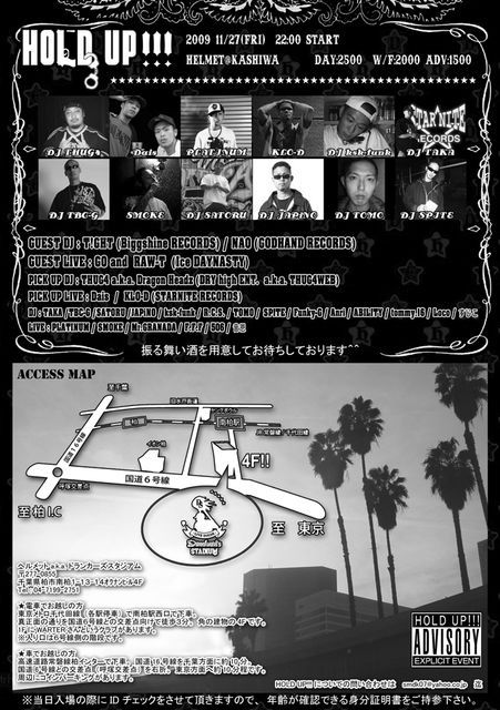 DJ : TAKA(STARNITE RECORDS) / TBC-G (TALK BOX CARTEL) / SATORU (Thug Ballerz Records)