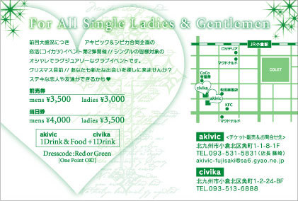 魚町の人気カフェダイニング アキビック&向かいの姉妹店シビカの合同企画の恋活(コイカツ)イベントの第2弾開催