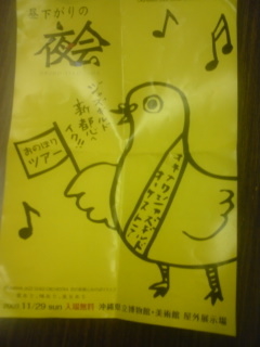 はいさい、管理人のクラーベです! 店主の奈々さんに許可をいただいたので、この場をお借りしてイベントの告知をさせていただきます! 来る11月29日(日)県立博物館で開催されるイベントライブに、クラーベがパーカッションで参加いたします。 硬派のジャズあり、ゆったりとしたボサノバあり、サンバあり、愛あり、鳩あり、屋台ありの、豪華ライブでございます! 出演:OKINAWA JAZZ GUILD ORCHESTRA 友情出演:サウダージ学院 出展:Rise Cafe/DOSHA/Zou Cafe/Lamp/琉球爪染家 入場無料! 雨天決行! ゲージツの秋 た