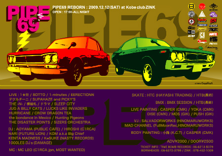2008年10月末で一時閉店した、PIPE69[http://www.pipe69.com]が一年ぶりのイベントを行います!!豪華出演陣と共に狂宴乱舞のパーティーを楽しみに来て下さい!!