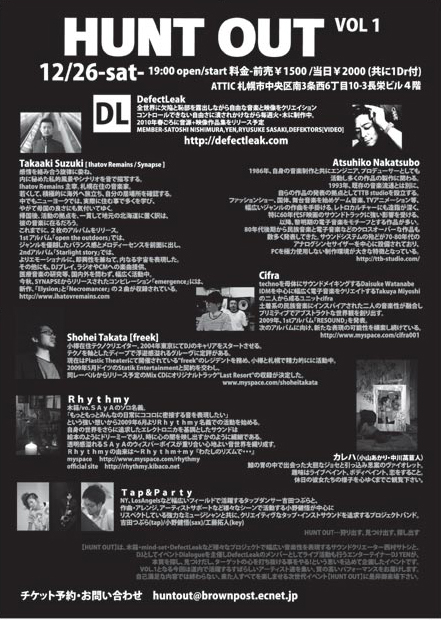 2009年12月29日 (OPEN 10:00 TICKET \1,000-(1DRINK) / DOOR \1,500-(1DRINK))