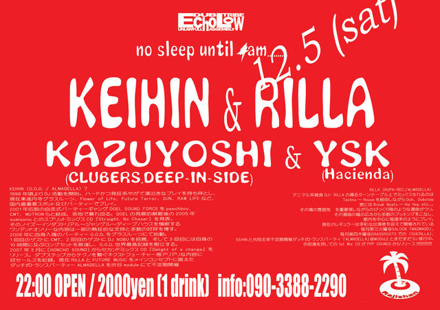 START PM10:00〜 ADV \1,500(1D) / DOOR \2,000(1D)