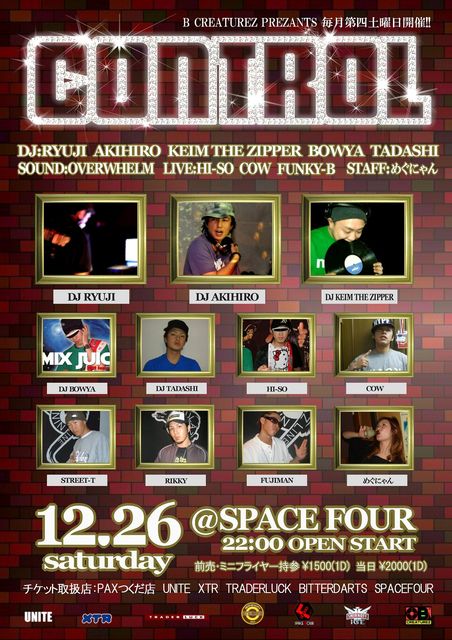 レギュラーメンバーからはDJ BOWYA、DJ TADASHI、OVERWHELM、FUNKY-B、HI-SO、COWがスタンバイ。