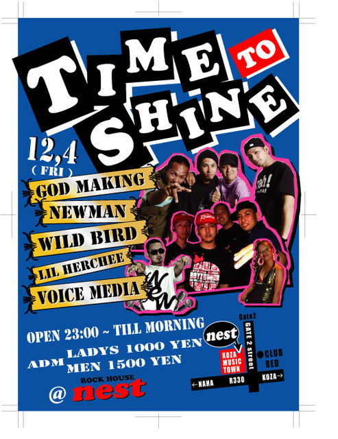 12/4金曜日 "TIME to SHINE" @nest(コザ音市場一階)