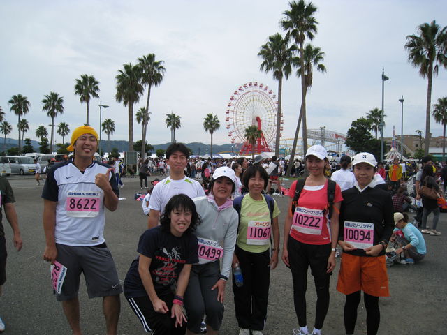 参加者:ワッキー、マイケル、イケミー、なおちゃん、ケイコさん、みよりん、みなみ スケジュール: 和歌山駅7:50集合 9:50スタート マラソン大会 温泉 マリーナシティで、バーベキュー 来年は、もう少し早い時間に集合したほうがよさそうですね。 荷物預けるのにバタバタしました。
