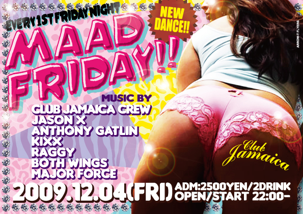 NEW DANCEスタート!12/4(FRI)"MAAD FRIDAY!!"@西麻布CLUB JAMAICA