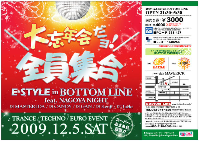 日時:平成21年12月5日(土) OPEN 22:00 / Close 6:00