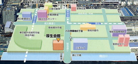 開催日程:2009年12月6日(日) 集合場所:築地市場厚生会館 4階体育館 開催時間:9:00〜12:00 コート代:約1,000円 アクセス:都営地下鉄大江戸線、勝ちどき駅・築地市場駅 徒歩約5分 URL :http://www.h6.dion.ne.jp/~kousei-k/ ※厚生会館使用上の注意※ 1.ゴールは優しく取り扱いましょう。 2.使い終わったら、モップを掛けましょう。 3.開けた窓は、閉めましょう。 4.女子更衣室の鍵はフロントで借りて、終わったらフロントへ。 5.女子には、愛のあるパスで。