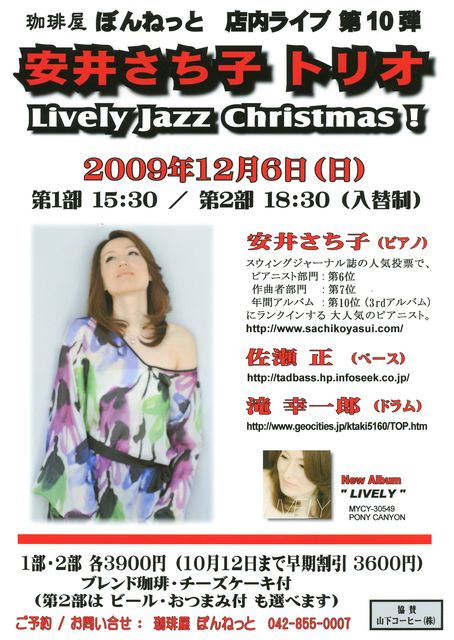 12月初に、好評のキンテートのライブを湘南の地でします。