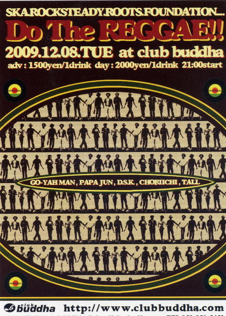 SKA.ROCKSTEADY.EARLY REGGAE.ROOTS.DUB.CULTURE.LOVERS etc ▲Selector▲GO-YAH MAN/PAPA JUN/D.S.K/長安/國壱/TORU/ETANAL ROCKER ●OPEN●21:00START ●TICKET●ADV \1500/1D DAY \2000/1D club buddha 名古屋市中区新栄1-5-25 第2Mビル6F(CBC東30m広小路1本南) INFO/052-251-5450 Naureal 名古屋市大須3ー43ー1 美鈴やビル2階 052ー251ー0511