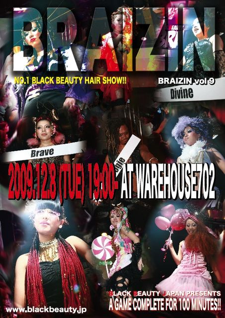 日本全国北は北海道から南は九州沖縄まで! 1000万人のブラックビューティーファンの皆さん! お待たせいたしました! 2009年ファイナル! ブレイジン開催です!! ※映像は前回の模様です。 ■ブレイジンルール。 制限時間100分 モデルへの事前施術なしに技術者2名まで参加可能・ モデルの性別問わず。 ウォーキング時の演出内容問わず。 来場者に配られる投票券を一枚一票として集計。 最も獲得票の多い出場者が優勝。 来場者は見た直感、フィーリング、その他会場で感じたあらゆる印象を元に 1つ