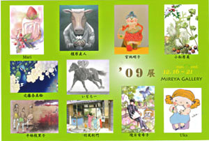 会期 2009年12月16日(水)〜12月21日(月) 時間 11:00〜19:00(初日12:00から/最終日17:00まで) オープニングパーティー 12月19日(土)17:00〜19:00 会場 ミレージャギャラリー 〒104-0061 東京都中央区銀座2-10-15 オオイビル4F TEL:03-6303-8844 交通 http://www.mireyagallery.com/mappguide.html E-spaceからの出展者 小松原 英 / Mari 心機一転......の心構え、新旧作品取り混ぜての参加になります。動植物を中心に描いたリアル画から、水彩での風景画までお楽しみいただきたいと思います。(小松原