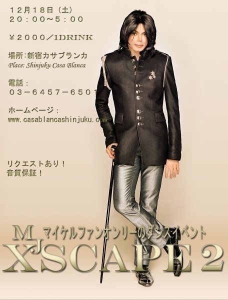 お待たせ致しました!!! 前回いらっしゃれなかった方からのリクエストにより、またまた決行です!!! めちゃくちゃ音のいい中で一晩中マイケル聴いて踊りたい!!! 楽しい事やサプライズが大好き!!! マイケルになりたい!!! マイケルファンの素敵な友達が欲しい!!! ダンスが上手くなりたい!!! 今迄観た事無いマイケルイベントを体験したい!!! 自分のダンスを観ながら踊りたい!!! MIQUE JACKSONと逢いたい!!! そんな方に耳よりのお知らせです♪ ☆☆☆☆☆Xcape2☆☆☆☆☆ 12月