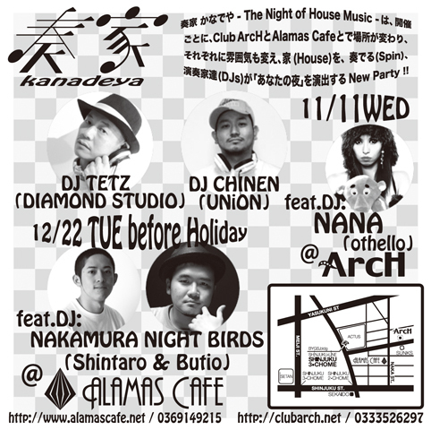 イベントの宣伝失礼します! 今週火曜日、新宿二丁目のALAMAS CAFEにて開催の 入場無料のHOUSE MUSICイベントです! EMMAさん系アッパーハウスやディープハウス、 ポップス等好きな方是非チェックしてみて下さい! ◆■◆■◆■◆■◆■◆■◆■◆■◆■◆■◆■◆■◆■◆■◆■◆■◆■◆■◆ 奏家 かなでや - The Night of House Music - @ALAMAS CAFE http://mixi.jp/view_community.pl?id=4630534 NAKAMURA NIGHT BIRDS(Shintaro&Butio)出演! 入場料無料のHOUSE MUSIC BARイベント、奏家-kanadeya- 家(House)を