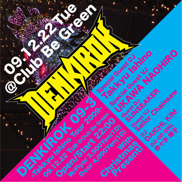管理人様、告知失礼致します。 こんにちは、デンキロクです。 いよいよ当日まで3日と迫りました。 平日と侮るなかれ、翌日23日水曜日は祝日で休みです!!! 仕事の心配、体の心配をしているアナタ、心おきなく楽しんで下さい。 沖縄で石野卓球と宇川直宏が同時に楽しめるのは「デンキロク」だけです! 目玉は、セッティングの為に前日入りまでする気合いの入れようの宇川さんです。卓球さんとの相性は言わずもがな。手を抜かぬ、ストイック且つ狂気的なプレイを体感して下さい。 加えて、赤十字蝶子のポールダンスも見逃せません! 11月の
