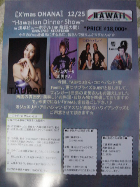 ◆日時:12月25日(金)19:00〜LATE