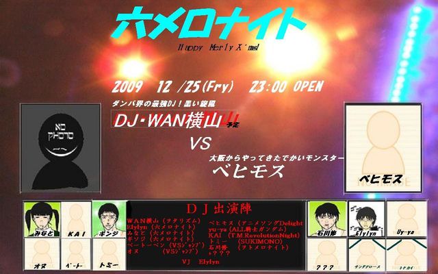 ホーホーホー!みんなのお陰で2009年はとっても楽しい一年だったよ。 時が過ぎるのは早いね、もうクリスマスパーティーの季節だよ。 友達同士で開くホームパーティーみたいな感じ。 サンタクロースがトナカイと一緒にやって来る!? 東京のベストフレンドDJ達が出演するよ! :未来に向かって突き進む80KIDZのMAYU、ドレスアップキラーの2BOY、BOY ALLERGYのロンドンの”lost love”EEEIKO、 ポーカーフェイスのRS、NEW ELECTRO キッドGIRRY、GENDERのSO アンダーグ
