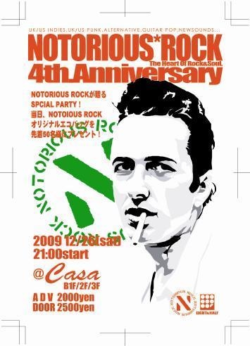 NOTORIOUS ROCKの4周年パーティーのお知らせです!