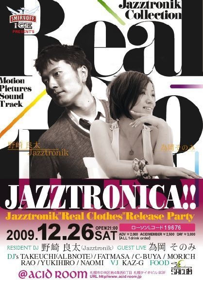 この秋最も話題のドラマ「リアル・クローズ」<関西テレビ制作・CX系全国ネット>。 10月13日(火)22:00〜よりスタートする香里奈さん主演のドラマとJazztronikが完全コラボ!劇中で使用される音楽は全てJazztronikの書き下ろし&代表曲です。 http://ktv.jp/real-clothes/index.html さらに「リアル・クローズ」サウンドトラックのリリースも決定! タイトル: Real Clothes〜Motion Pictures Sound Track / Jazztronik Collection 発売日:2009.12.02 品番:PCCA-03060 価格:\2,625<Tax in> そして、年末にJazztronikこと野崎良太