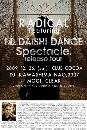 管理人さま告知失礼します! RADICAL Featuring DAISHI DANCE Spectacle. release tour Open 21:00~ [Special Guest Dj] DAISHI DANCE [Dj's] Kawashima Nao 3337 Mogi Clear リラグゼーションなメロディーとハウスミュージックの最先端ビートの融合。 「Daishi Dance」2年ぶり3枚目となるアルバムリリースツアー ADV 3000yen/DOOR 4000yen お問合せ 0138-54-7293 Bar R 0138-56-0012 Roll 0138-45-2002 ClubCocoa
