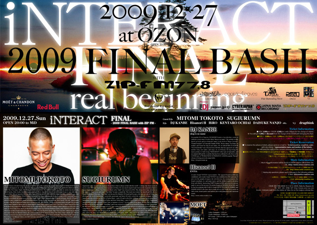 数々の歴史を生んだ『iNTERACT』12月27日(日)の開催をもってラストを迎える場所はその歴史を共にしてきた名古屋の老舗クラブ「OZON」今回のコンテンツには、Live paint of “YOICHIRO” ・ Live of “egoistic 4leaves” ・ Flair Bartending Show of “JACK & Jade from Tatula” ・ Dance of “REAL ( Nobuyo・Ras・Hide )” ・ Show Case of “ENTIA” ・ Floral Decoration of “HiDE” ・ Space Design of “TAKAHiRO”、そしてDJ Timeには”MITOMI TOKOTO” ・ “SUGIURUMN” ・ “DJ KANBE” ・ “Hisanori H” ・ “Yusaku”