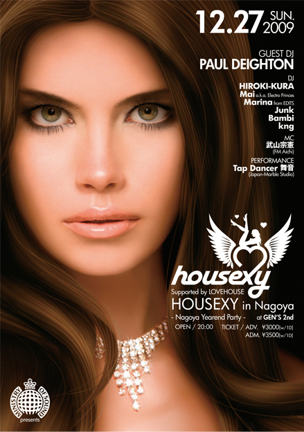 ▼i Flyer http://www.iflyer.jp/event/48453 世界一有名なダンスミュージックレーベルとして名高い「Ministry of Sound」。 その中でも、1.2を競う人気を誇るモンスターレーベルが『housexy』だ。 ヨーロッパでは「セレブ・お洒落ハウス」の大きな流れを先導し、毎月全世界で オフィシャル・パーティーが開催されている。 日本で4回目の開催となる今回は housexy yearend partyとして登場だ。 「housexy」の魅力 溢れるデコレーションがpartyを彩り、Guest DJの Paul Deigtonがhousexy サウンドで名古屋のイベントの1年を締めく