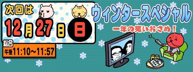 今年は12月最後の日曜日にスペシャル放送です! この勢いで、シーズン5が放送されると嬉しいですね!! そんなわけで、みなさま、お見逃しの無いようにウインク