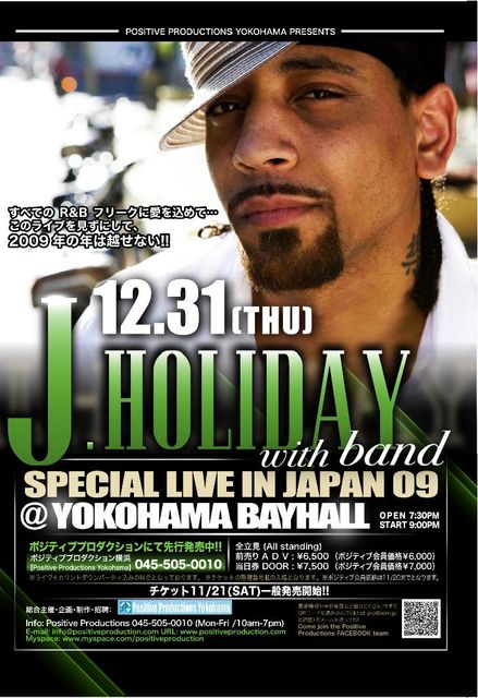 スペシャルゲスト:J.HOLIDAY (カウントダウンパーティーにて2曲ほど歌います!!)