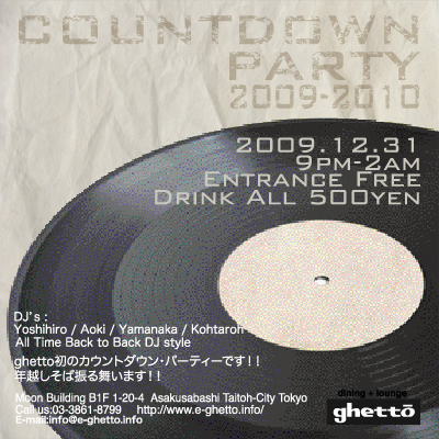 (Door/With Flyerで入場の方 + Joint Mix CD + BLUE SKY + 年越しわんこソバ + 24時以降FREE樽酒!!)