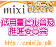 低用量ピル普及推進委員会のためになる情報をまとめたサイト、 超β版をアップしました! ハイ、なんとなくの形だけで、ほとんど情報はありません!! http://mixi-pill.com [ミクシィのピルコミュ]って覚えてネ。 すでにコミュ参加の数人の方からご協力くださっていたり アドバイスや要望などいただいております。 コミュTOPで紹介している某ピルサイトが近日リニューアルとのことで、 やはりユーザーによるQ&Aを充実させるべくまとめ中のようです。 実際服用している実用的なユーザーの声だけは負けない量