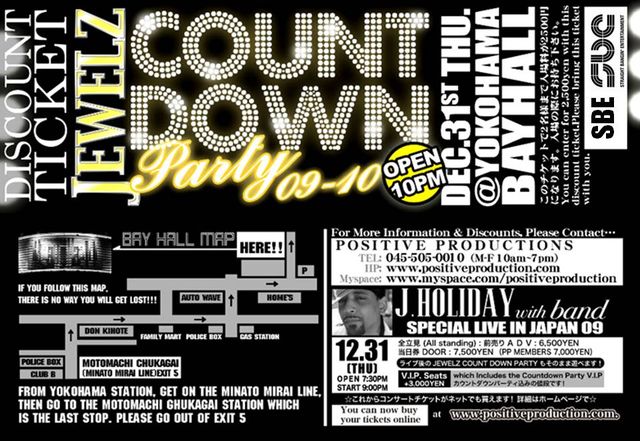 スペシャルゲスト:J.HOLIDAY (カウントダウンパーティーにて2曲ほど歌います!!)