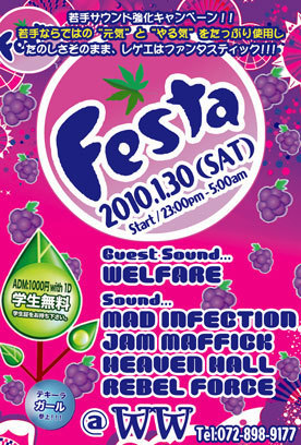 告知失礼します。 WW新年一発目のダンスは MODERN BEATのSOUND SYSTEM導入 ゲストに7周年を迎えた 枚方初登場のALBATROSSを迎えて 楽しい夜をお届けします! No Brandnew! Old Only Dance!! GOOD THINGS OLDIES 2010.1.9(土) at:WW =Guest Sound= ALBATROSS =Link Up Sound= SOUL FLY from Shiga =Regular Sound= WAVE BEAT EXTRA MODERN BEAT with Sound System Start:24pm-Till Morning... ADM:\500-.+1drink別途 WW 枚方市村野高見台1-33 tel.0728989177 WWコミュ http://m.mixi.jp/view_community.pl?id=2720292&