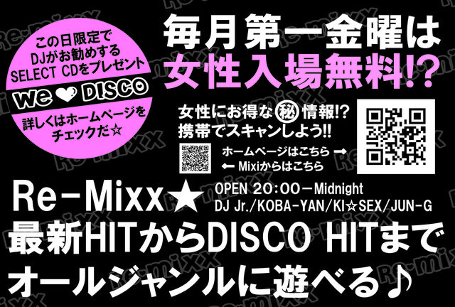 第一金曜日は女性入場無料!&キーワードコードでDJお薦めセレクトCDをGETしちゃおう!!