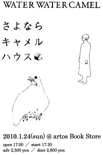 2010年、年明け最初のartos店内ライブに「WATER WATER CAMEL」がやって来ます! 今回は、待望のニューアルバムを引っ提げての単独ライブとなります。彼らの物語を綴るような優しい音楽にぜひ触れてください。