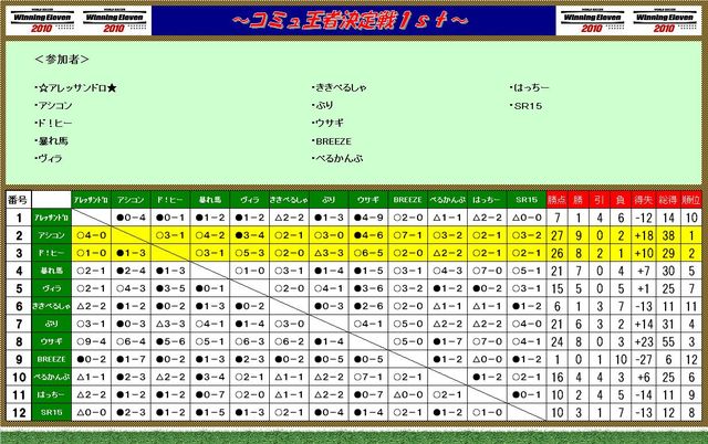 最初に!参加の際、ウイイレID(PS3アカウントのID)の記載がない場合、 参加と見なしません。 また、今大会は大会形式や、試合結果報告方法が今までの大会と 異なりますので、必ず規定を確認の上、参加表明お願いします。 相手にも迷惑がかかる為、全消化確実に消化出来る方のみご参加ください。できそうもない方は、参加をご遠慮願います。 必ず最新版のパッチをアップデートした状態で 大会に臨んでください。 第1回〜第5回大会及び特別枠フリー大会1stで、歴代大会上位者表彰トピにて 表彰された方限定による、コミュ王者決定戦1s