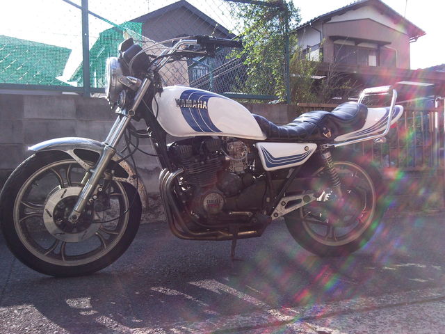 ・メーカー名: YAMAHA ・車名: xj400d ・年式: 1983年 ・車体番号:4GO-08**** ・2st/4st: 4st ・排気量: 400 ・色: 白(フレーク)青ラメライン ・自走: 不可(キャブセッティング出来てない為) ・走行距離: 20000km ・車検/自賠責の有無: 無し ・事故歴: 自分のところに着てからはありません ・キズや不具合の有無: 要CRキャブセッティング タンク2ヶ所2cmほどのエクボ有り 右サイドつめ割れ有り ウインカーリレー要交換 その他中古、旧車のため傷有り ・カスタム箇所や装備: 現在250cc登録
