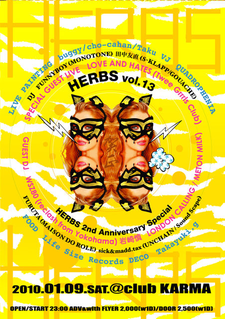 毎回刺激的で多様なサウンドやカルチャーをミックスし続けてきた"HERBS"もおかげさまで2周年!