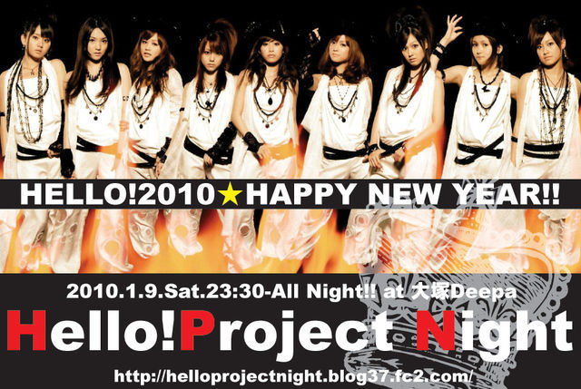 お世話になっております。 2010年“ハロ☆プロナイト”は誰にも負けない楽しさで新年会開催からスタートです! 歌超風月モード+αでパワフルに盛り上げて行きたいと思っておりますよ! “ハロ☆プロナイトin東京” 〜朝までハロプロシャッフルモベキマス!〜 日時:1/9(土)23:30〜All Night! ※2次会は新宿に移動で完備かも かも かも! 会場:大塚Deepa 03-3984-6085 住所:豊島区南大塚3-49-10大塚鈴本ビルB1 http://www.otsukadeepa.jp/ 当日:\2000(1d付) ※質問等はクニオ直でお気軽に。 DJ:ラフ/メルティーロ
