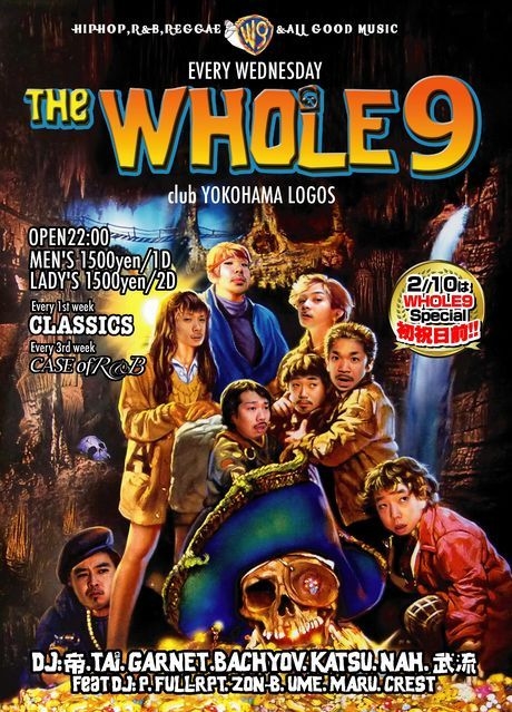 The グーニーズ!! 横浜の水曜日、夜の大定番!whole9!!! 6日の一発目はお客様も多く皆踊っていて、かなり良い感じで終わることが出来ました!! 13日の水曜日も盛り上がっていきましょう!! 皆様お待ちしています! whole9はDJが「脇役」お客様が「主役」というスタイルで、他のイベントにはない、このような面白いポイントがあります! ・リクエストOK!! お客様からのリクエストにDJが流れを見ながら出来る限り答えます。 聴きたい曲がありましたらリクエストカードに記入してDJ、STAFF にお渡しください。 ・