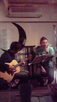 新年、第1弾は舘恭介さんとの合同企画! Weekday Golden Live Vol.6 「2010年 アコましておめでとうございます☆」 今回はGt弾語のアコースティックな5組☆ ☆入場無料(要オーダー)☆ ※混雑を避けるため受付時ドリンクのオーダー(\500)をお願いいたします<(_ _)> Open 19:00 Start 19:40-22:00 _/出演者_/_/_/_/_/_/ (変更の可能性有<(_ _)>) 20:00- ♪舘 恭介&TradSoul 20:30- ♪酒井 淑幸 ※写真左 21:00- ♪近藤 陽一郎(ゲスト) ※写真中央 21:30-22:00 ♪kazmin'.com ※写真左 22:0