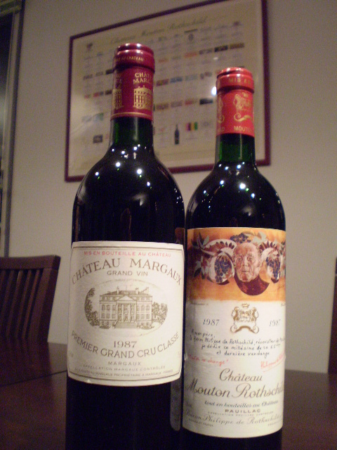 5大シャトー好きの方も、まだ未体験の方も要注目のイベントです。 『1987マルゴーvsムートン』 タイトルの通りのワイン会です。 お伝えすべき点はたったの2点のみです。 まずは両方ともコンディションが完璧だということ。 国内で最も信頼できる個人コレクターから譲っていただいたボトルで、リリース当時に購入し、その後は低温の地下蔵に全く動くことなく保管されていたという非の打ち所がない品物。 つまり車で言うならワンオーナー。 そしてもう1点は、この会費で熟成した80年代の5大シャトーを飲み比べるチャンスはまずあり得ない